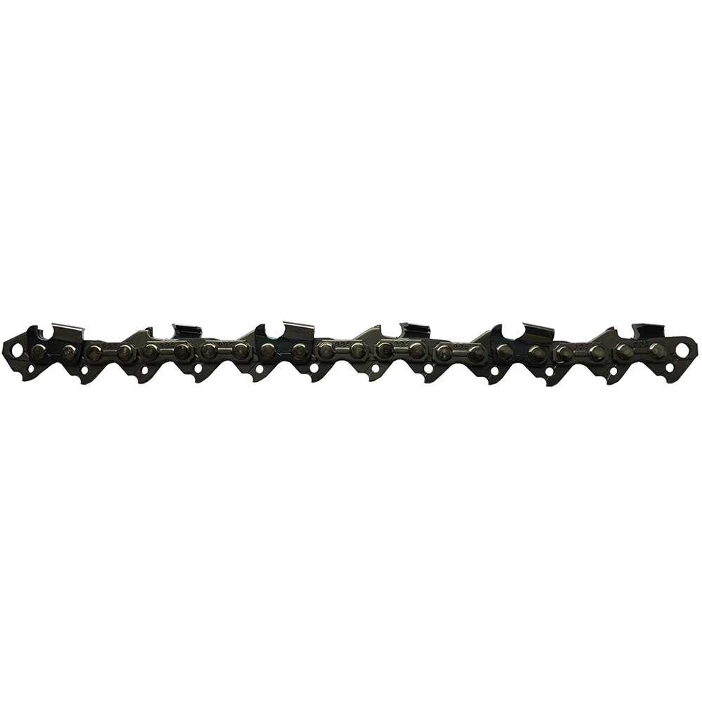 Пильные цепи DDE изготовлены из износостойкой легированной стали. Все звенья, независимо от того, являются ли они режущими, ведущими или просто соединительными, проходят процедуру дробеструйного упрочнения, увеличивающую предел прочности на разрыв и твердость материала на 20-30%. Для удобства обслуживания сверху на зубе нанесена специальная риска, ориентируясь на которую, легче отслеживать правильный угол при заточке. Ведущие и соединительные звенья, благодаря тщательно разработанным особенностям конструкции в виде отверстий и канавок, участвуют в процессе смазки всех подвижных деталей цепи и шины и обеспечивают более равномерное распределение масла по всем местам трения. Все цепи DDE имеют специальную конструкцию звеньев для снижения вибрации и отдачи. Пильная цепь DDE 91VS с пазом 1,3 мм, режущие зубья имеют боковую грань с двойным рабочим углом, направляющие соединительные звенья специальной формы, обеспечивают защиту от отдачи. Рекомендуется для цепных электрических и легких непрофессиональных пил с бензиновыми двигателями до 45 см3, и с шинами длиной до 45 см.