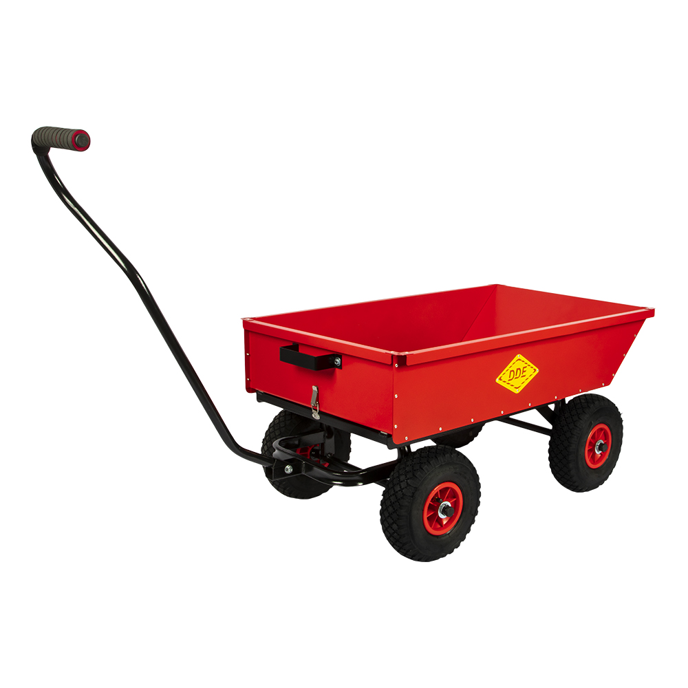 Садовые тележки DDE на четырех колесах упрощают работу на земле и используются для разного рода перевозки, с помощью которых можно без труда транспортировать насыпные или поштучные грузы.